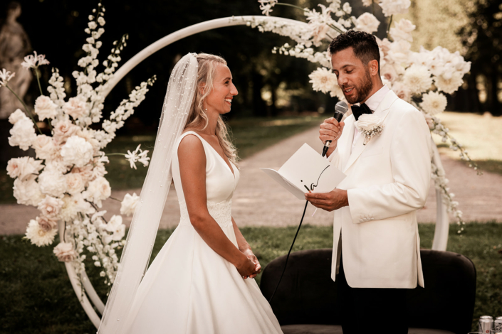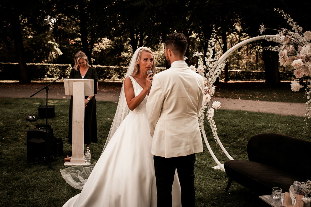 De voorbereidingen die Nicolette treft zijn uitgebreid. Ze ondervraagt familieleden, getuigen en andere naasten om een mooi 360 graden beeld van ons en onze liefde te vangen. Op onze bruiloft overtrof ze al onze verwachtingen. Het voelde voor de aanwezigen of Nicolette ons al jáááren kent. Ze wist onze liefde op een prachtige manier te vieren met haar woorden en uitstraling.
