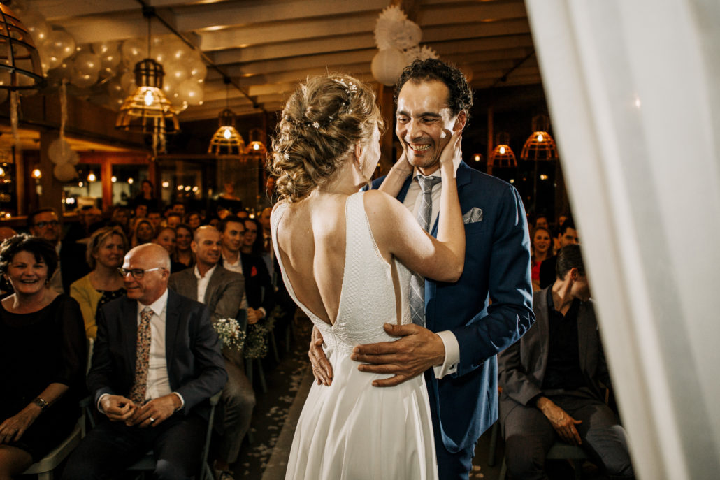 Met je fijne, open uitstraling wist je ons meteen te overtuigen. We hebben meerdere leuke gesprekken gehad bij ons thuis, wat er voor zorgde dat je ons echt leerde kennen en daardoor precies begreep wat voor verhaal bij ons past. Het was ook fijn dat we onze vows bij je konden toetsen en dat onze getuigen ook input konden leveren, voor een compleet verhaal.
