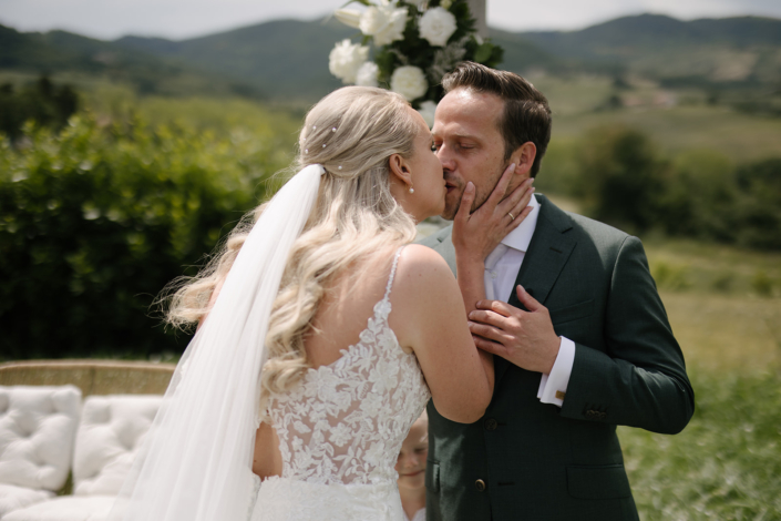 Wat ons vooral opviel, was de tijd en moeite die Nicolette nam om ons echt te leren kennen. Tijdens de voorbereidingsgesprekken heeft ze ons heel goed aangevoeld en begrepen, waardoor we het gevoel hadden dat ze niet alleen onze trouwambtenaar was, maar iemand die betrokken was bij ons verhaal. Ze stelde de juiste vragen en luisterde naar de kleinste details. Dit zorgde ervoor dat de ceremonie tijdens onze bruiloft zo persoonlijk en intiem aanvoelde. Het was duidelijk dat ze ons verhaal prachtig had verweven in haar toespraak.