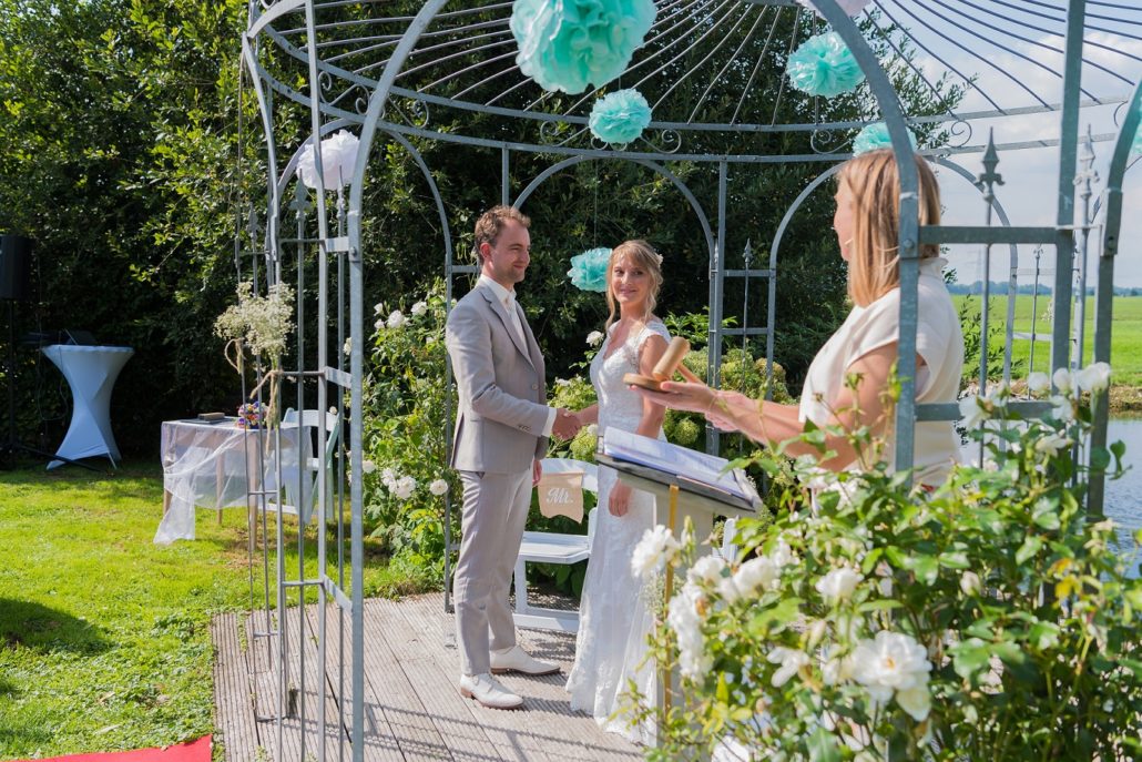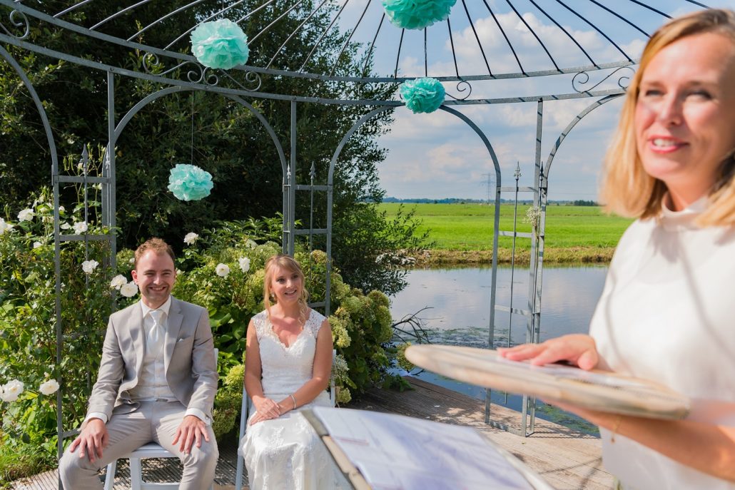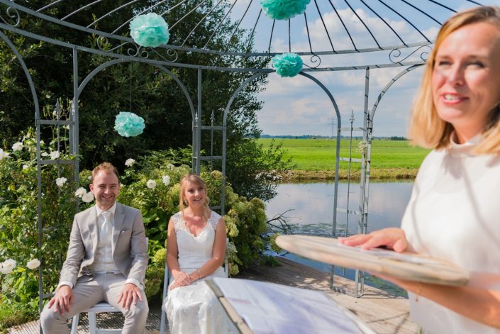 De ceremonie was geweldig! Je hebt precies de sfeer neergezet die we wilden: informeel met veel humor en een kleine traan. Wat hebben we gelachen! Maar ook de gevoelige onderwerpen heb je op zo’n positieve manier verteld, dat was zo prachtig.