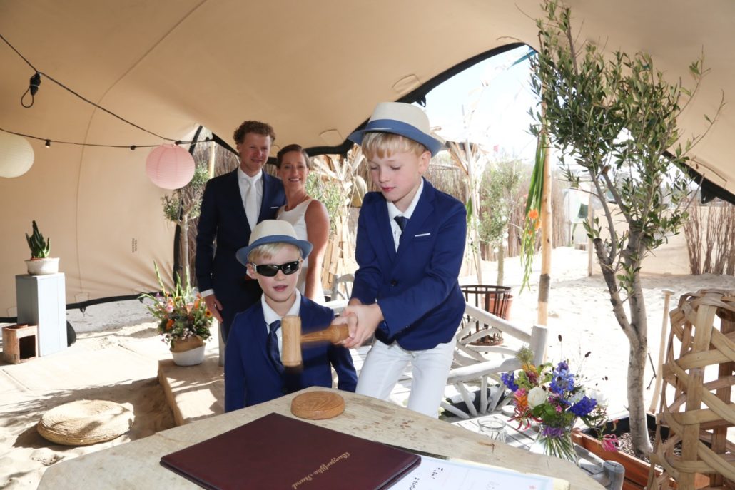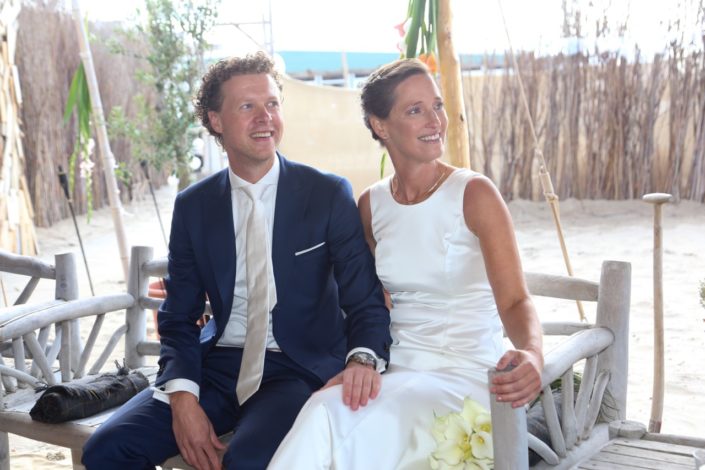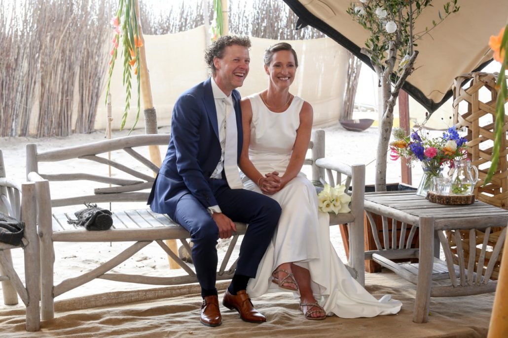 Vrijdag 7 september 2018 hebben wij onze prachtige trouwdag in Zandvoort gehad. Wij zijn al 18 jaar samen en houden erg van de zee en het strand en wonen gelukkig ook dicht in de buurt. Ons ideale plaatje was dan ook samen met onze kinderen trouwen op het strand, lekker laagdrempelig, kleinschalig en persoonlijk. Ik ken Nicolette al sinds mijn studietijd en toen al hield ze van schrijven, spreken en was altijd heel persoonlijk en attent. Met de gewenste mooie en intieme dag van ons, was zij de perfecte persoon om ons te trouwen. We hebben dan ook erg genoten van jouw verhaal, ons verhaal. Je hebt het verhaal zo weten te maken dat we zijn ontroerd, maar ook hard hebben moeten lachen. Ook van ons gezelschap hebben we positieve berichten teruggekregen.