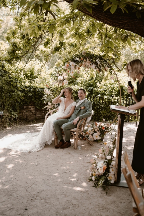 We zijn ontzettend blij met de ceremonie die je voor ons verzorgd hebt. In de voorbereidingen was je ook erg behulpzaam. Je bood zelfs aan om onze geloftes aan elkaar alvast te lezen, zodat deze goed op elkaar aansloten. Heel fijn! De gesprekken en vragenlijsten met jou liepen ook soepel en geven echt een compleet verhaal van onze reis samen. We kijken er naar uit om over 10 jaar onze eigen vragenlijsten nog eens te lezen.