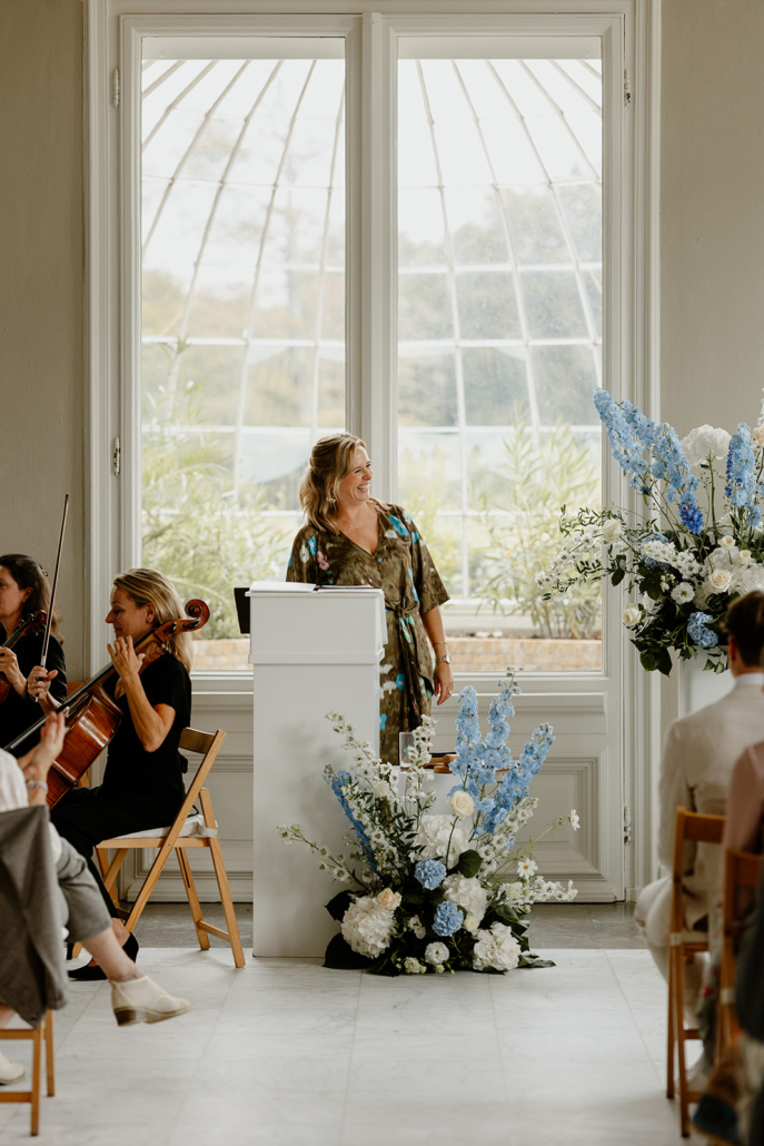 Vanaf het moment dat we met haar afspraken heeft ze de regie in handen genomen en op een heel ongedwongen doch gestructureerde en efficiënte manier verhalen over ons en onze omgeving verzameld waardoor ze een prachtige speech kon houden die een hele mooie herinnering is aan onze trouwdag.