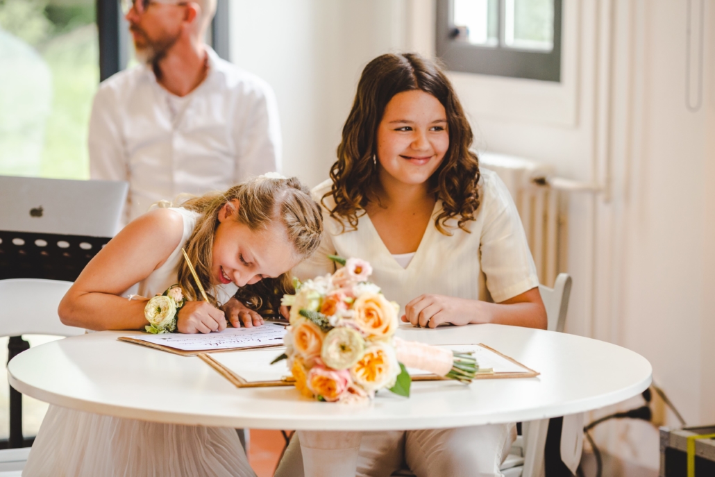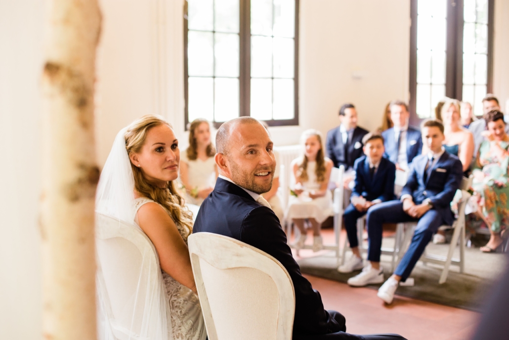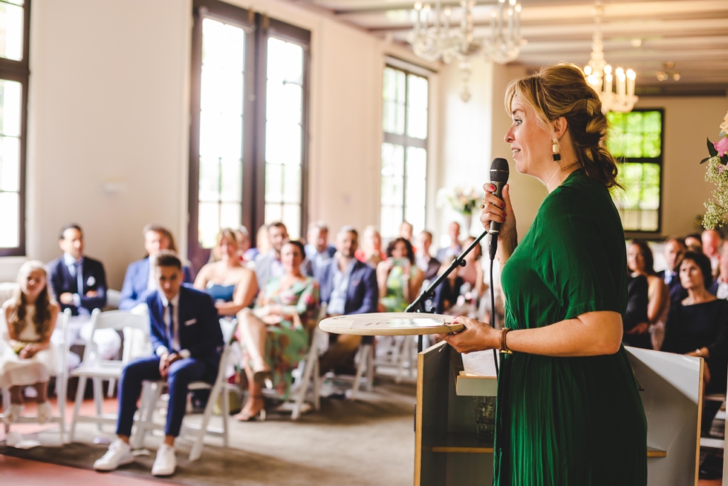 Een informele, dynamische en vooral liefdevolle ceremonie… voor ons dát waar het om draait op de grote dag. Dat wilden we. Het verhaal, ons verhaal en muziek. Het moest een (muzikaal) feest der herkenning worden. En dat werd het! De zorg en tijd die je in ons verhaal hebt gestoken, écht geweldig. We hebben met onze gasten zo genoten van jouw vertelling met aandacht voor de kinderen, getuigen en ouders. Enorm gelachen ook… de nerveuze bruid die véél te vroeg opkomt en daarbij ook nog eens haar sluier scheurt, de zonen die compleet ‘stuk gaan’ om jouw verhaal over onze eerste zoen. ‘Awkward!’ We hebben er heerlijke foto’s van als aandenken.